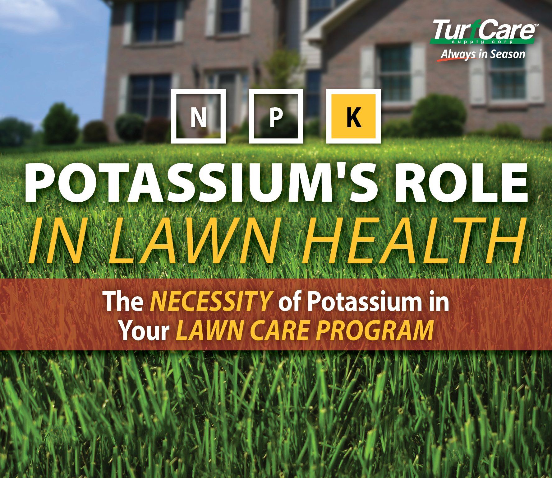 THE NECESSITY OF POTASSIUM IN YOUR LAWN CARE PROGRAM Maintaining a lawn with a well-balanced fertilizer program is key to promoting strong, healthy lawn that can withstand weed and insect infestations as well as suppress diseases. There are three key nutrients needed for a lawns’ health, nitrogen (N) , phosphorus (P) and potassium (K). Potassium is the nutrient most necessary to improve and protect a plants health against environmental stresses, helping your lawn better resist harsh weather and drought especially during to the winter season. Without potassium, grass would appear to be yellow and stunted in growth with a weak root system and unable to withstand harsh conditions. Discover why potassium’s role in turf and soil is important to the overall health of a lawn: