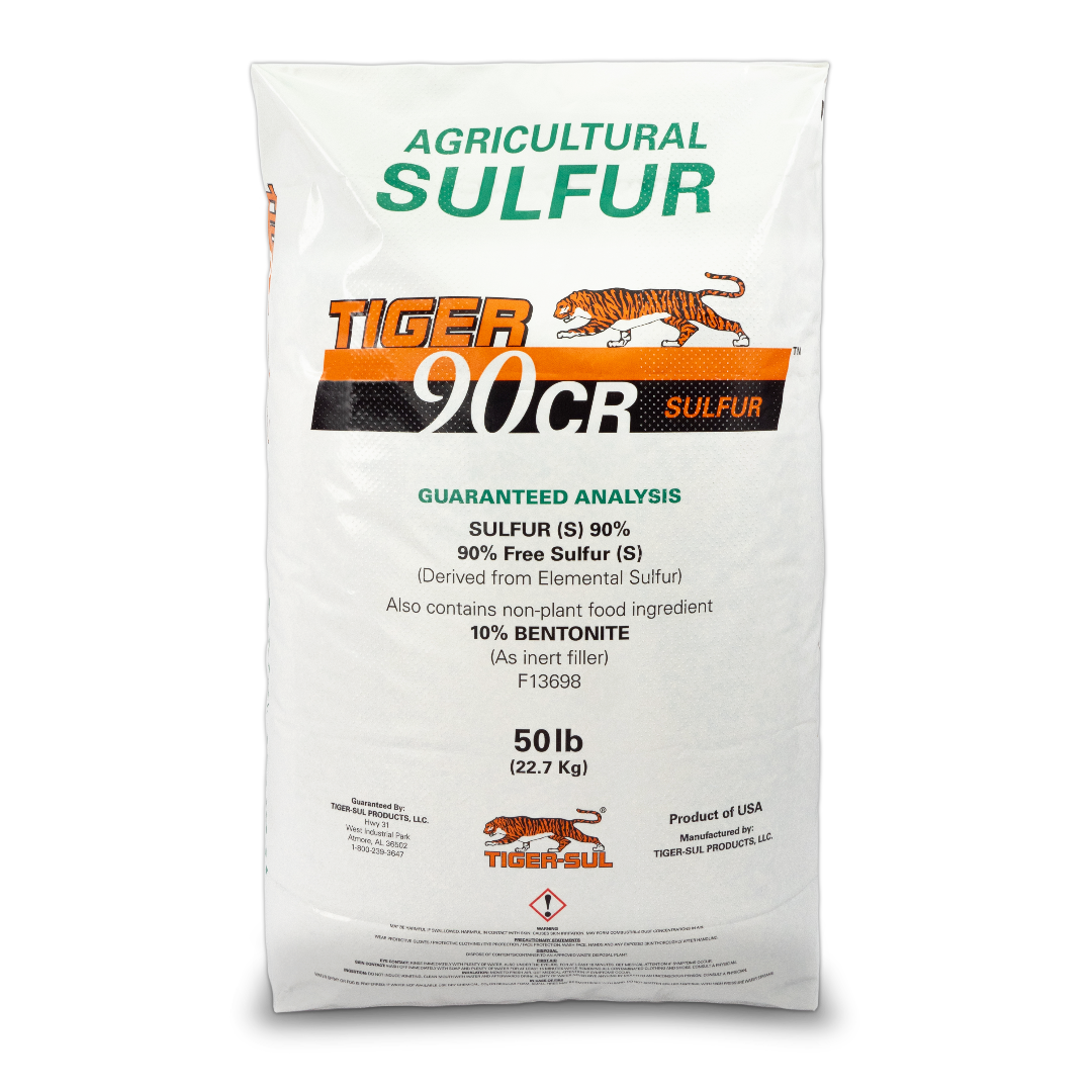 Specifically formulated, Tiger 90CR® Sulfur fertilizer is designed to quickly degrade, disperse, and convert to sulphate throughout the growing season. Research shows that Tiger 90CR® Sulfur converts to sulphate faster than other forms of elemental Sulfur for season-long nutrition and high yields. Yearly applications of Tiger 90CR® will improve soil Sulfur levels and loss associated with soluble nutrients. The high analysis of Tiger 90CR® Sulfur (0-0-0-90), means each pastille is 90% Sulfur. It is almost four times more concentrated than ammonium sulphate, which results in less product to handle, blend, and spread. The consistent size and shape of the pastilles allow for ease of spreading. Tiger 90CR® Sulfur contains a special blend of bentonite clay to facilitate pastille fracturing and disperse the Sulfur particles. Research shows that Tiger 90CR® Sulfur converts to sulphate faster than other forms of degradable elemental Sulfur.
