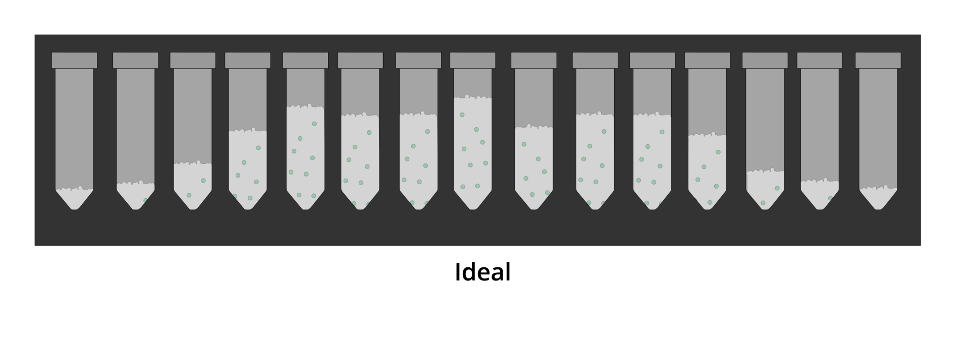 - Time to measure what we’ve collected in the boxes. After you pour the contents of each box into its corresponding container, make sure to leave the boxes in their original places, we will need to measure them later. Arrange the containers in the same pattern as their corresponding boxes, side-by-side, optionally on a tube rack, with the center box’s container also in the center. With all of the containers next to each other, it is easy to see the patterns of your fertilizer distribution and whether it needs adjusting.