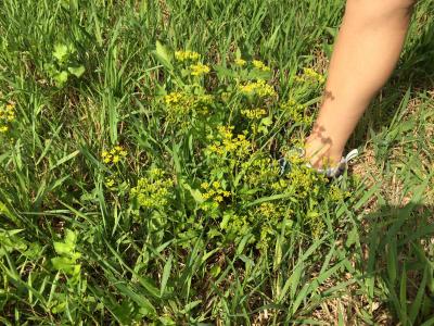 If mechanical control is preferred, please take note that Wild Parsnip does not flower all at once, the affected area must be monitored closely for several weeks to prevent seed distribution. Mowing or cutting stands before flowering in June will eliminate the majority of the mature plants and drastically reduce seed production. Make sure to wash equipment after words to prevent movement of seeds to new areas. The rosettes and recently bolted stems that haven’t seed-set yet, may be controlled by severing the tap root 1-2 inches below the soil surface. Careful monitoring required to remove re-sprouts and recently germinated seedlings and rosettes.