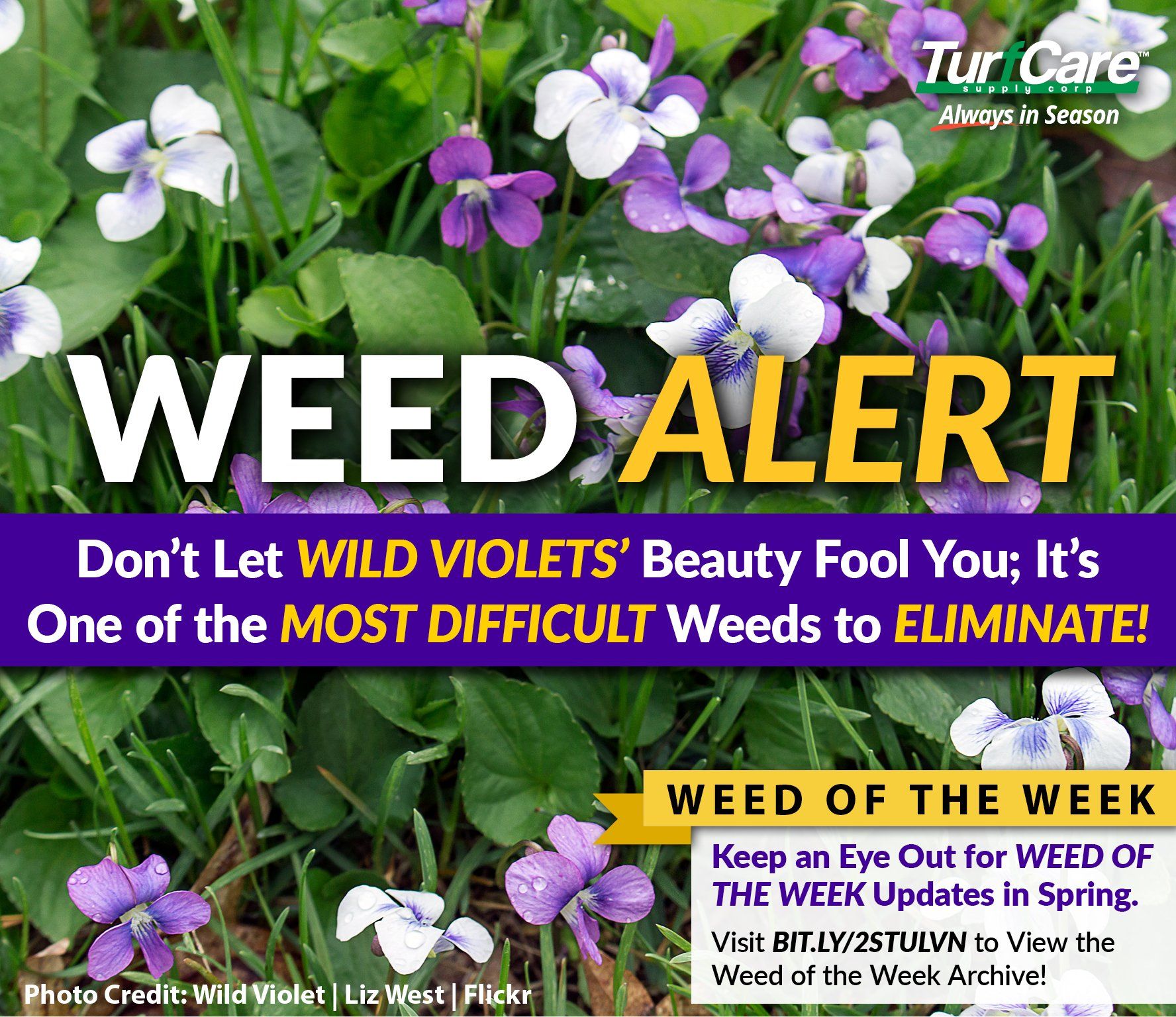 TYPE Wild Violet is a winter annual or perennial broadleaf weed that typically emerges in early spring and persists through the summer. It is particularly hardy, and tends to last an average of two growing seasons. This weed grows in clumps, with unchecked foliar growth topping out around 4-6 inches. Wild violet has a well-developed taproot which makes it more resistant to conventional herbicides than other common turf weeds.